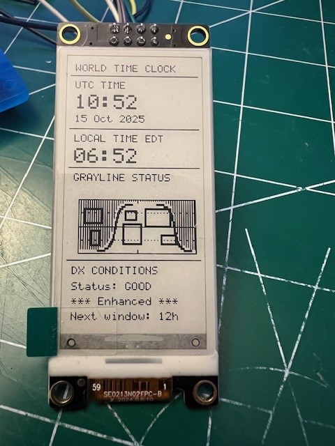 Continuing with claude.ai to better work with the -paper displays, this project was to modify the library to allow partial refresh of a small portion of the screen and produce a world clock and grayline display.